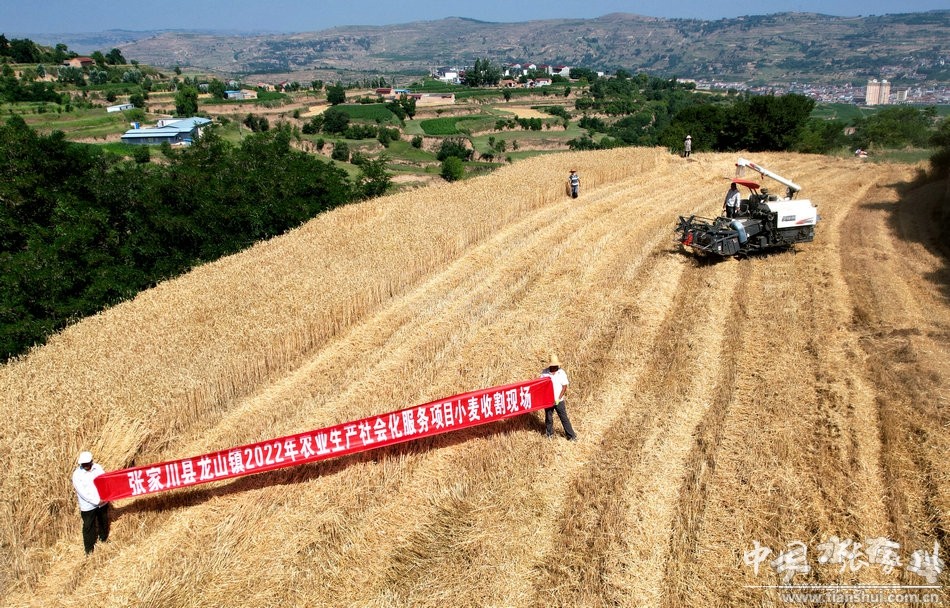 农机助力,收割正酣。芦塬村顺源农机服务农民专业合作社负责人杨金虎说,顺源农机服务专业合作社承担了龙山镇农业生产社会化服务项目2500亩,目前,已完成机收1200亩,趁着当前晴好天气,合作社将增派更多收割机械投入作业,估计后天就能完成全部收割。