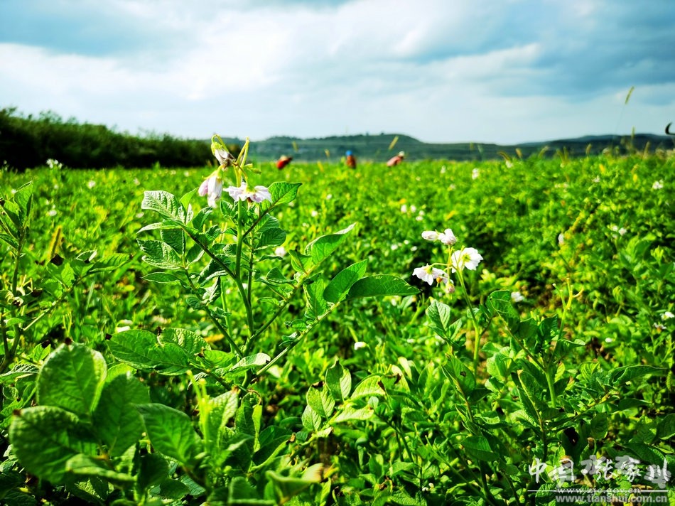 当前,张家川县10万余亩马铃薯陆续进入结薯成熟期。在马鹿镇龙口村、木河乡店子村等马铃薯良种繁育基地,记者看到,一垄垄、一簇簇的马铃薯郁郁葱葱,绿油油的枝叶铺满田地,盛开的马铃薯花星星点点、漫撒田野,美不胜收,一派丰收在望的喜人景象。
