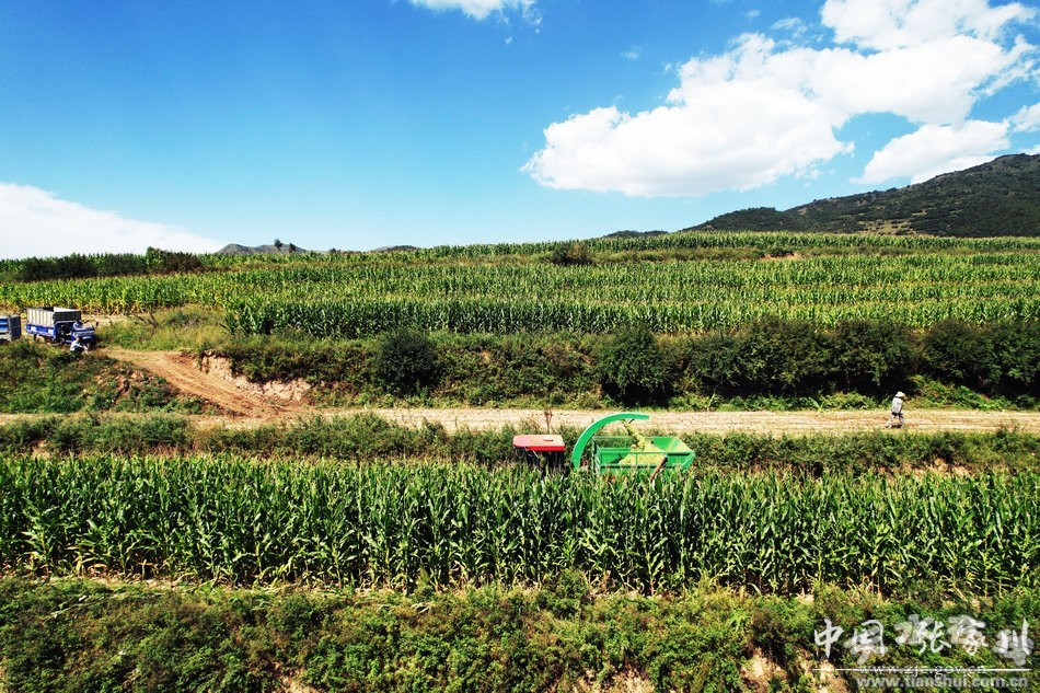在马鹿镇龙口村青贮饲料玉米种植基地,集中连片种植的饲料玉米铺满层层梯田,绿油油的玉米长势喜人,村党支部书记杨治国脸上洋溢着丰收的喜悦,据他介绍,龙口村的1000多亩青贮玉米已经和收贮企业签订了购销合同,镇上还协调收获机和运输车辆进行“一条龙服务”,省工省时还省心。