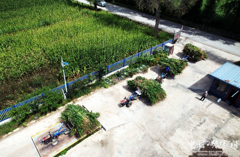 在马鹿镇丰牧源种养殖农民专业合作社门前,连日来,满载饲料玉米的车辆排起了长队,农民群众在技术人员的指导下有序过称、青贮,一派繁忙景象。