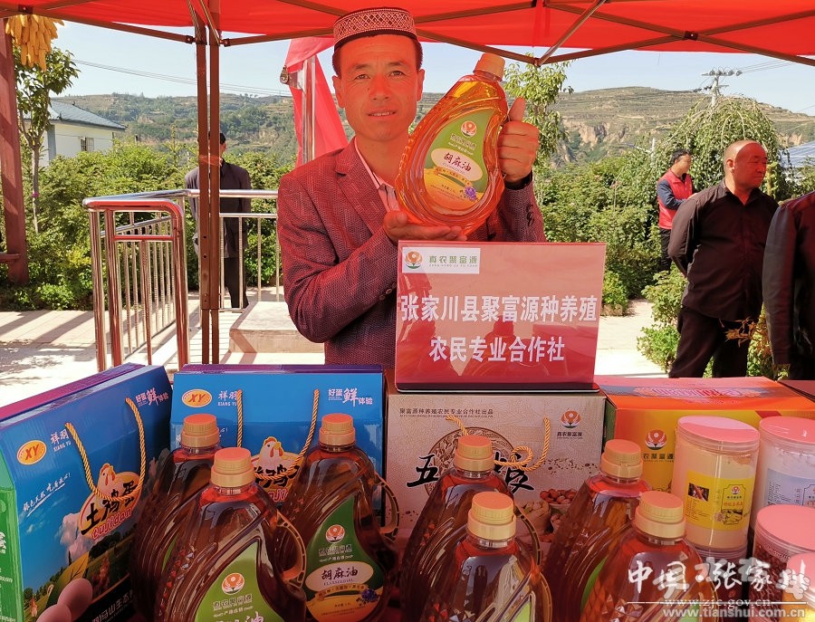 “又是一个丰收年,我们聚富源合作社的产品能和全县的农产品一同亮相,感到非常高兴!感谢政府搭建的这次展销平台。”张家川县川王镇聚富源合作社负责人马强对记者说。