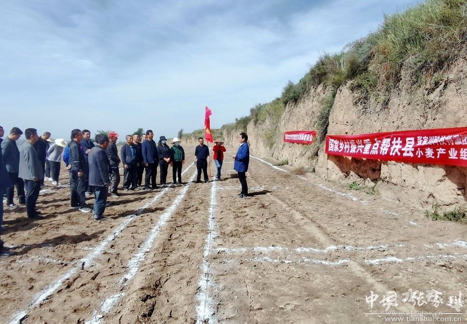 9月22日,国家乡村振兴重点帮扶县科技特派团团长、小麦产业组组长、甘肃省农科院小麦研究所研究员鲁清林,天水市农业生态环境站副站长杨海军一行先后深入大阳镇5000亩冬小麦绿色高质高效示范点,梁山镇岳山村冬小麦试验示范基地,就我县冬小麦种植情况进行现场调研指导,开展技术培训,为我县冬小麦产业发展把脉解惑,提出下一步的目标和工作计划。并现场查看土壤墒情,对冬小麦播种工作提供全程指导和帮助。专家组一行围绕土壤处理、小麦良种选用、土壤施肥、播种技术、加强冬管等一一进行讲解。