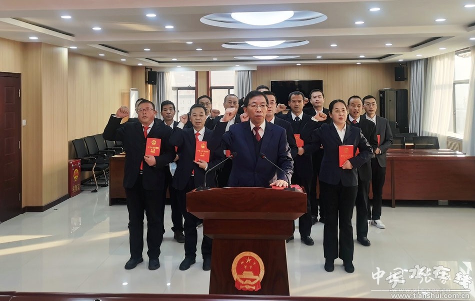 会后,举行了宪法宣誓仪式,县人大常委会主任牟建林领誓,机关全体人员进行了集中宣誓。宣誓仪式在雄壮的国歌声中开始,参加宣誓的全体人员面向国徽,奏唱中华人民共和国国歌。领誓人左手抚按《中华人民共和国宪法》,右手握拳上举,宣读誓词,宣誓人列队站立,左手捧宪法于胸前,举起右拳跟诵誓词。