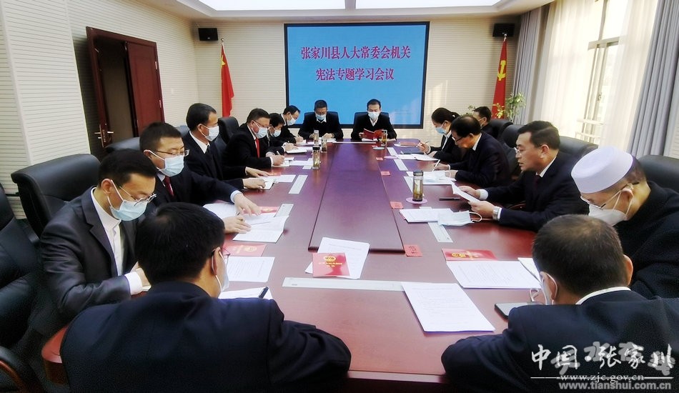 会议学习了《中华人民共和国宪法》和人民日报评论员文章《在法治轨道上全面建设社会主义现代化国家》。