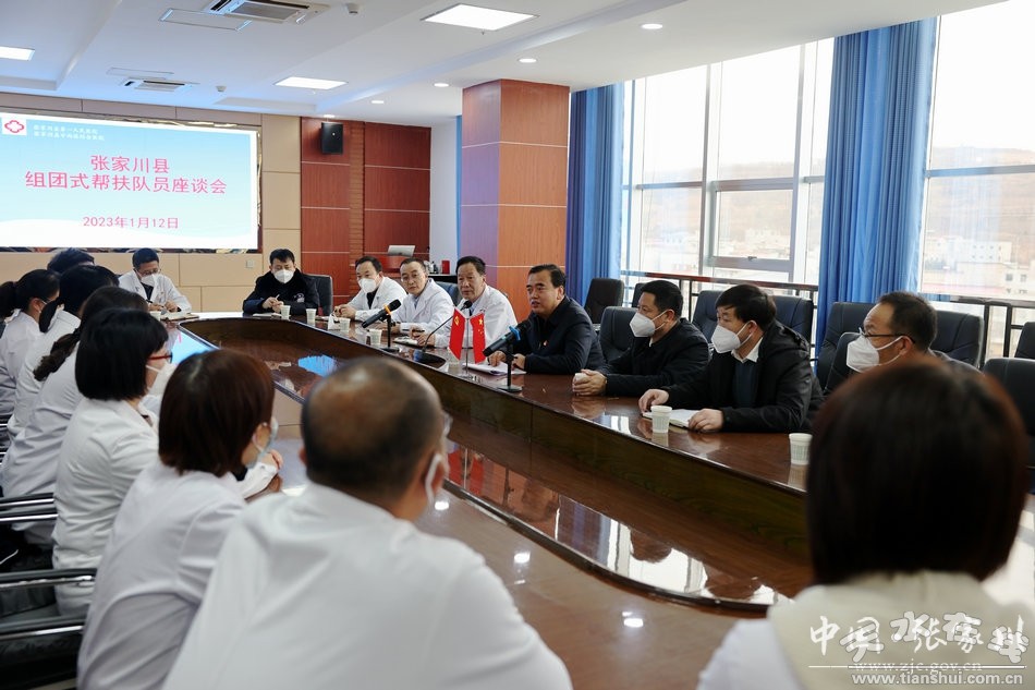 座谈会上,县领导详细了解医疗专家工作和生活情况,对帮扶工作取得的成效给予充分肯定,并向他们送去新春的问候和美好的祝福。强调,开展国家乡村振兴重点帮扶县“组团式”帮扶工作,是深化东西部协作对口支援、巩固拓展脱贫攻坚成果同乡村振兴有效衔接的重要举措。要坚持把“组团式”帮扶作为推动张家川县医疗事业高质量发展的一个重要契机,围绕提高服务水平、人才培养、学科建设等重点,精准谋划工作,提升帮扶成效。要充分利用帮扶资源,开展专题讲座、现场教学,学习借鉴先进的工作理念、技术经验、管理模式,借力“组团式”帮扶工作补足难点堵点,打造医疗帮扶新亮点,开辟医疗帮扶新路径。要把本土人才培养、急需学科建设作为帮扶重点,努力为人民群众提供更高质量的健康保障,推动张家川县医疗工作再上新台阶。
