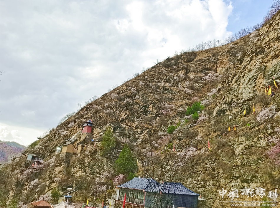 据王振国介绍,花果山水帘洞始凿于唐朝,是张家川县远近闻名的佛道教洞窟。洞窟开凿在长约1公里、高30多米的山崖上,山上有桃树、杏树。每到春季,远山如黛,桃林尽染,处处弥漫着浓郁的花香。