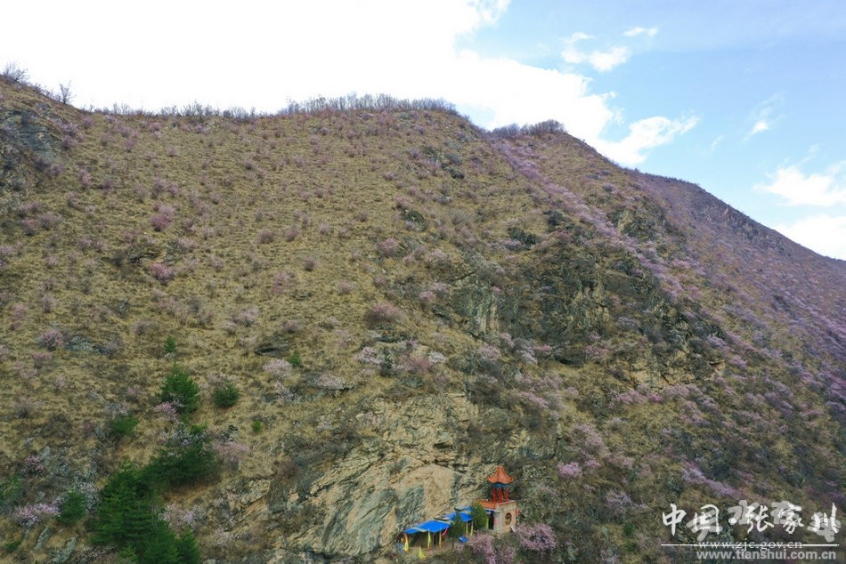 又到一年桃花盛开时,张家川县闫家乡王坪村水帘洞的桃花如约而至,桃红遍染林间,装点着生机勃勃的春天。