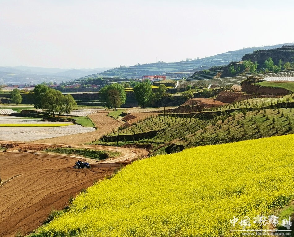 四月的末梢,花的盛开总是极尽温柔,风轻轻拂过,柳枝慢悠悠的舒展身姿,金灿灿的油菜花格外耀眼,绿油油的麦苗努力拨高枝节,一排排新栽的树苗昂首站立,田地地埂劳作的人们不敢歇息,生怕错过一年的好收成,游人们“咔嚓”的快门声不绝于耳,满眼的绿色填满了整个马关镇,一切都是希望,满满的“绿色体验感”与“幸福感”在心中激撞、迸发。