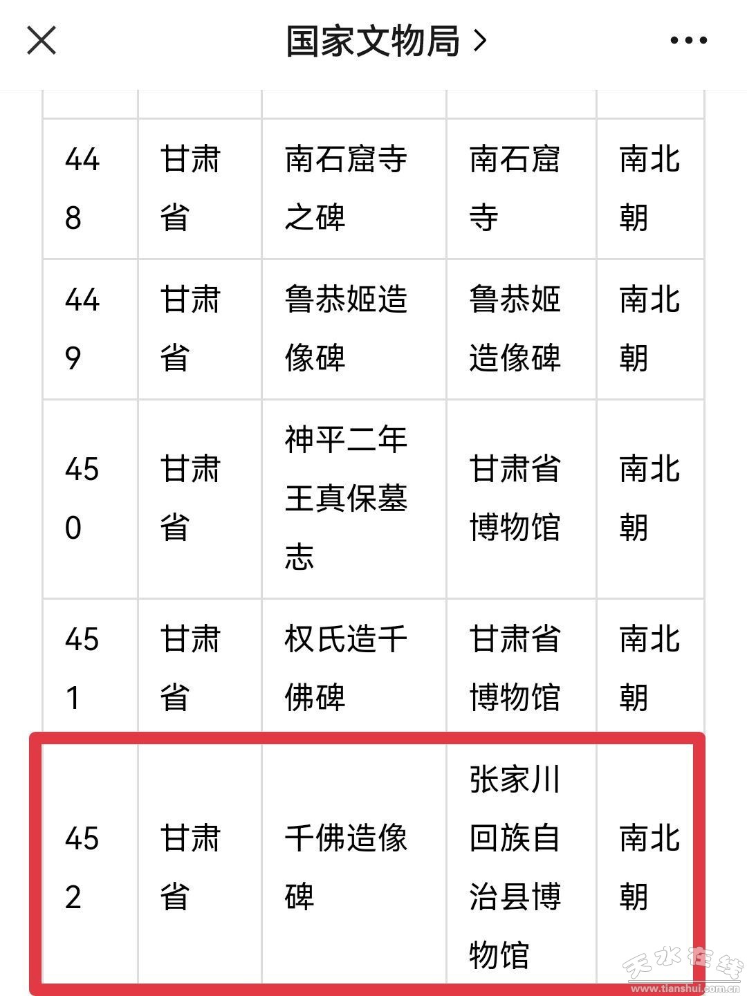 近日,国家文物局“第一批古代名碑名刻文物名录”公布,张家川县恭门河峪摩崖石刻和木河店子出土的北魏千佛造像碑入选。