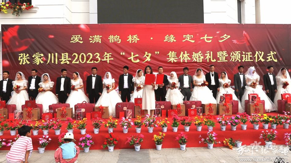 张家川县“七夕”集体婚礼暨颁证仪式的举行是张家川县青年生活中的一件大喜事,仪式以热烈、简朴、温馨的形式,弘扬移风易俗、婚事新办的社会新风,倡导文明节俭、健康向上的生活方式,符合时代的要求和青年的特征,是一次形式新颖意义深远的活动,也是张家川县贯彻党的二十大精神,深入开展讲文明、树新风活动的具体体现,必将有力推动张家川县精神文明建设工作再上新台阶。
