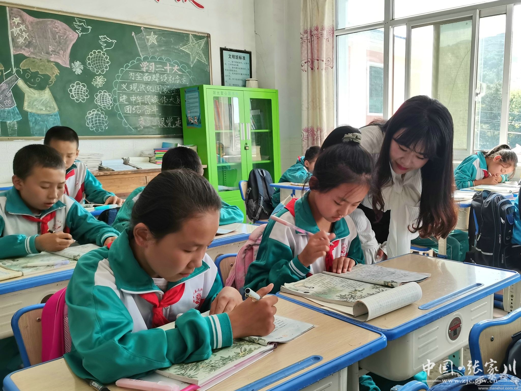 秋季学期伊始,大阳镇中心小学里绿草如茵、鲜花芬芳,朗朗读书声不绝于耳。走进五年级二班的教室,这天下午都是班主任王敏敏的语文课,她正在面批作业,并计划给孩子们梳理一下《桂花雨》这篇课文的脉络。王敏敏批阅的认真,对学生轻声细语、循循善诱。