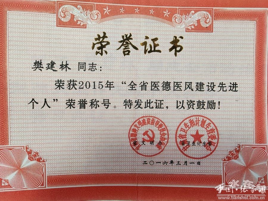 樊建林告诉记者,部分病人从他的长辈甚至几代人,一直都由我诊断治疗,对病人家的具体情况非常了解,和这些病人就像朋友一样,通过多年的交往,有了一定的感情,医患关系融洽。在临床30多年的工作中,我不断学习进步,通过参加学术交流会,看学术杂志总结学习,使自己的业务能力得到了极大的提升,临床中不但用中药,还用针灸理疗以及西医结合一起应用于临床当中,患者的临床医效得到了极大的提高,患者的满意度也就上升了。