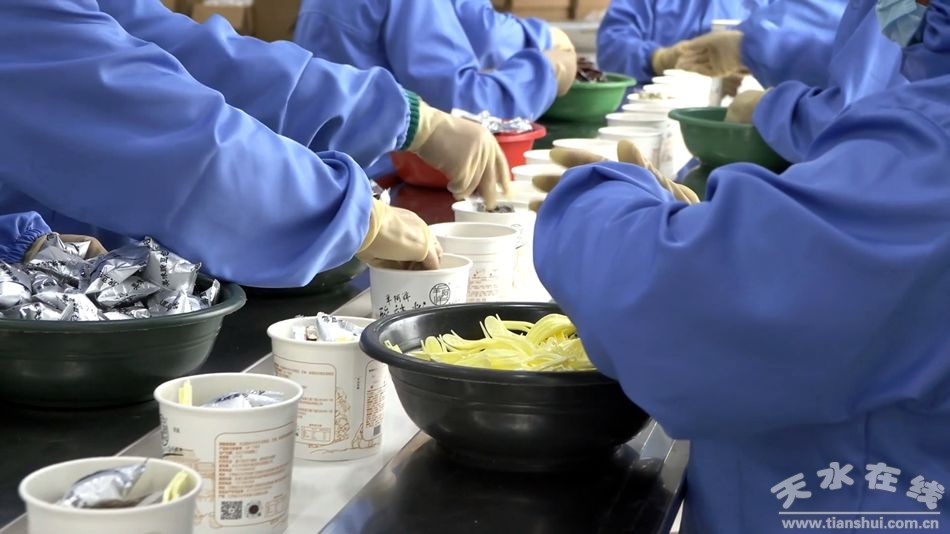 天水市羊阿洋食品科技有限公司总经理杨靖说:“去年10月份,我们公司开发出了羊阿洋酸辣粉丝、麻辣粉丝两款产品,同时开始生产,日产方便粉丝量3万桶,年产值1850万元”。