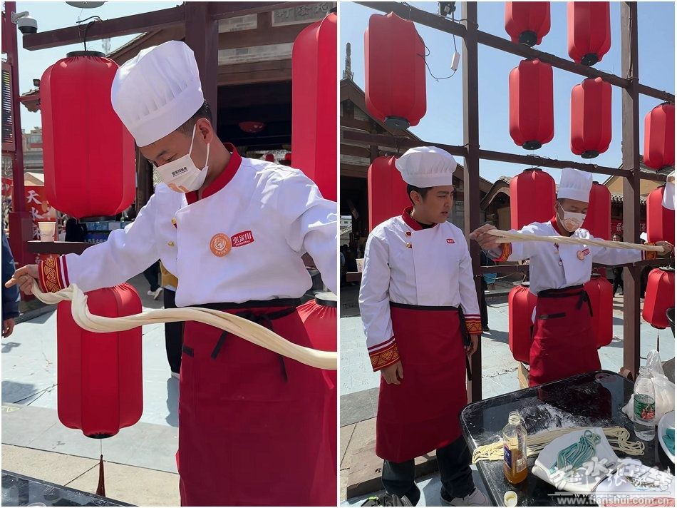 现场麻辣烫店家忙里忙外,为游客们烹饪美食,消费者们尽兴品尝。同时,还免费开展张家川兰州牛肉拉面培训,让游客品尝美食并了解制作技艺。丰富多彩的文化演出、独具风味的张家川麻辣烫和牛肉面,琳琅满目的特色农产品、特色小吃和文创产品吸引了众多远道而来的游客以及本地市民围观。各种特色产品赠送互动将气氛推向高潮,让游客们感受到了满满的诚意和幸福感。