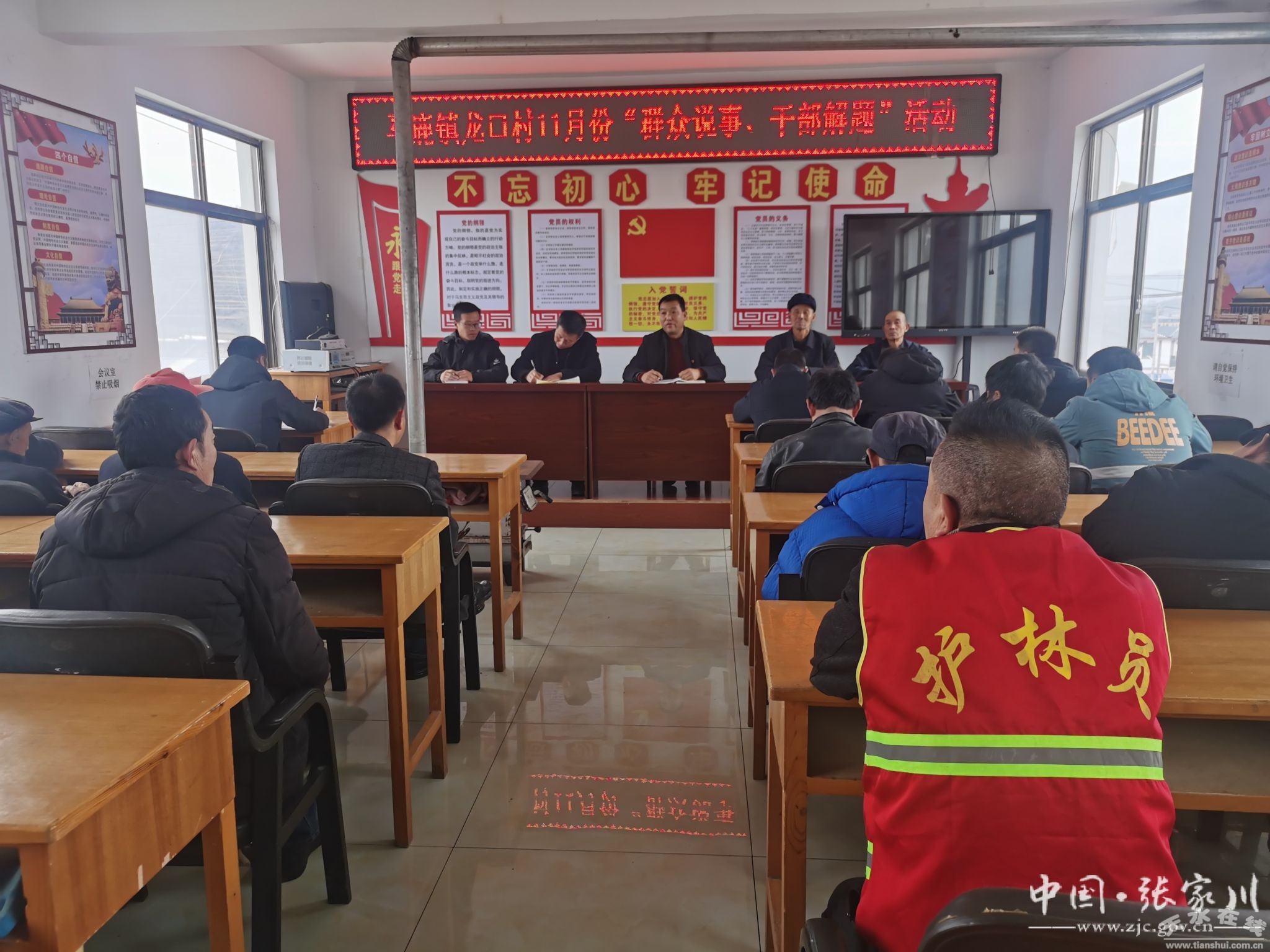 入冬后的一场大雪让地处关山腹地的龙口村有了些许寒意,远山上白雪覆盖,龙口新村鳞次栉比,犹如一幅和谐的中国水墨画,而村委会会议室架起的火炉让大家顿感温暖,龙口村11月份“群众说事干部解题”活动如期举行,会议室内气氛热烈。