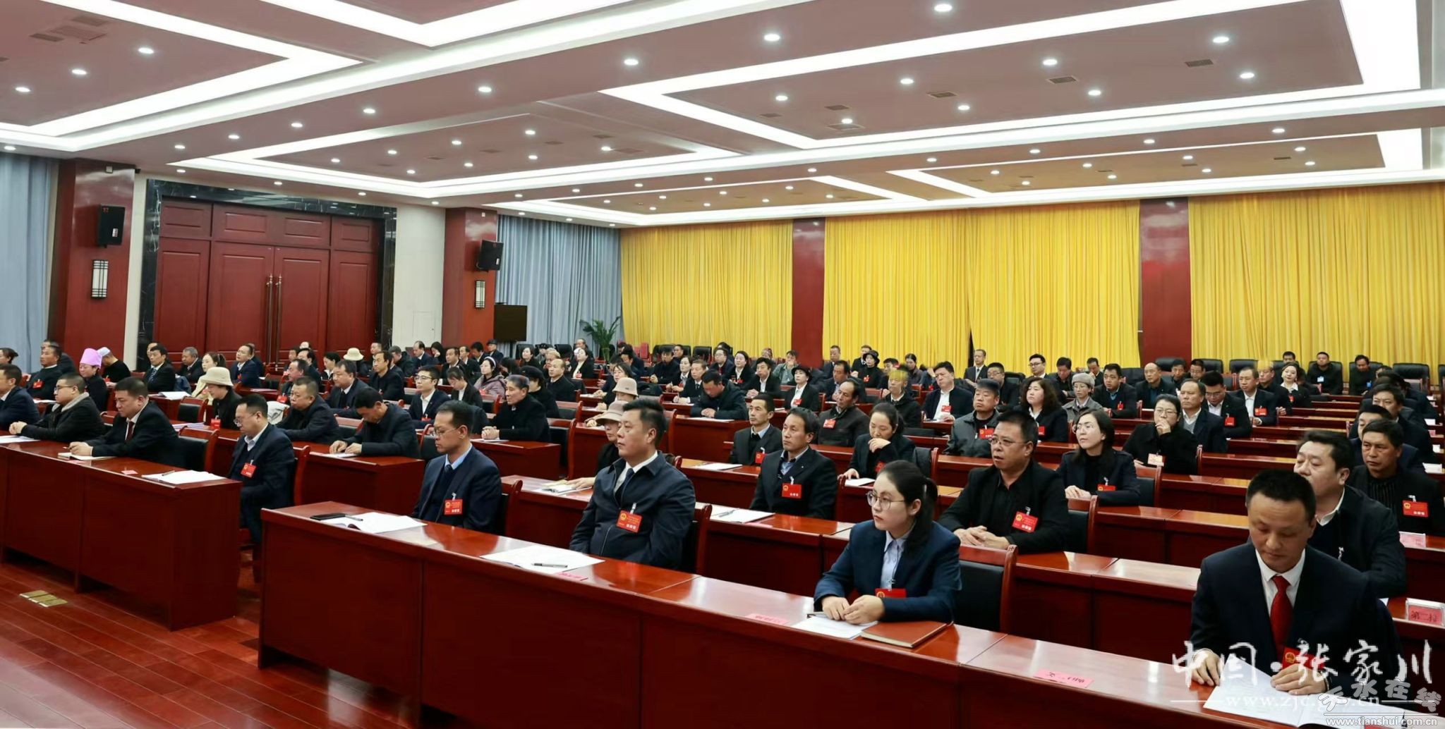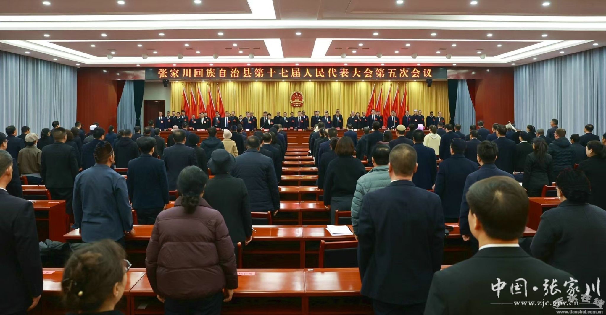 上午9时,牟建林宣布:张家川回族自治县第十七届人民代表大会第五次会议开幕。会场全体起立,奏唱国歌。
