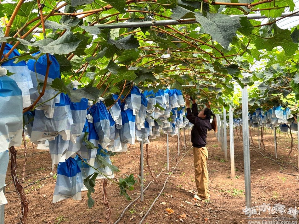 丰收的背后,是科技与辛勤的支撑。杨建刚告诉记者,为了攻克技术难关、提升果实品质,今年开春,他前往陕西杨凌和天水新阳镇等以先进种植技术闻名的地区考察学习。“你看这葡萄套着袋,既能防病虫害,又能保证果面干净,摘下来直接就能吃。”技术学习和本土实践,为今年的丰产优质奠定了坚实基础,据悉三座连栋大棚能达到三万多斤的产量,目前已有一万斤的订单售出。