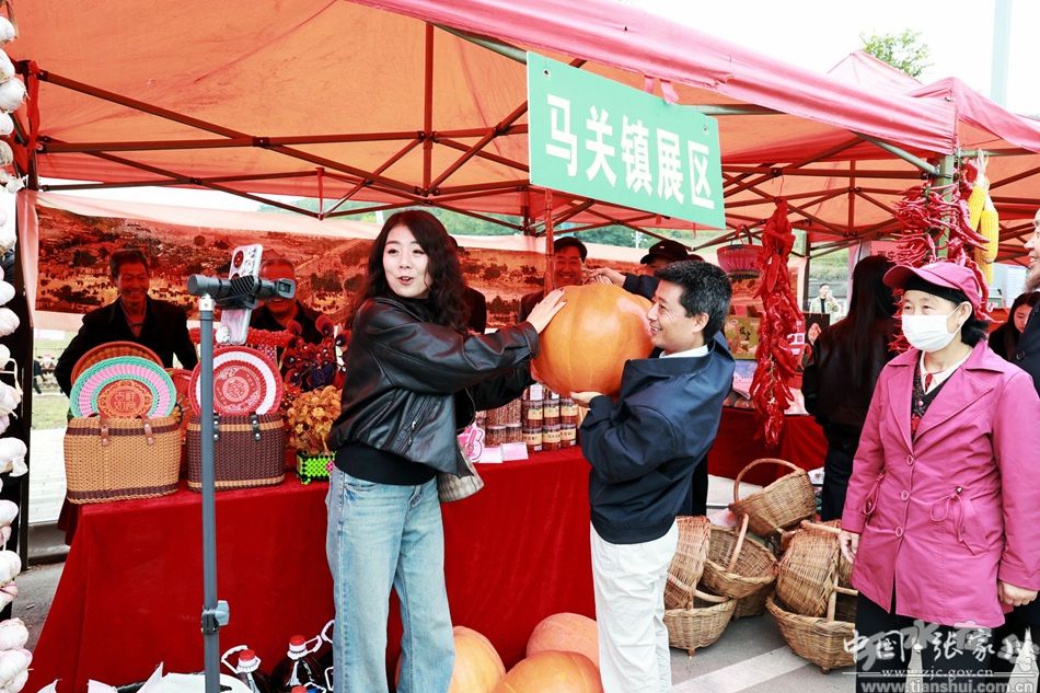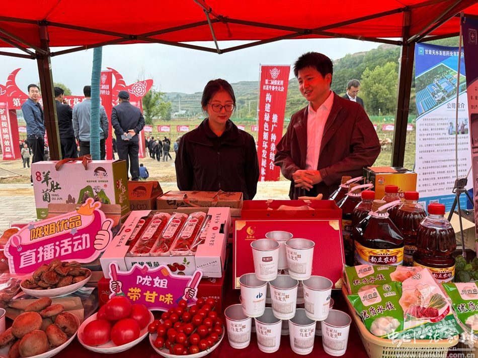 今年的展销活动还搭上了“直播快车”,“陇姐带甘味”直播团队走进现场,主播手持苹果、花椒等农产品,向网友详细介绍种植环境、生长周期和营养价值,还不时与评论区互动答疑。“家人们看过来,这是咱们张家川的高原苹果,日照足、糖分高,咬一口脆甜多汁!”随着主播的生动讲解,线上订单不断涌现,让张家川的“甘味”特产跨越地域限制,走向更广阔的市场。