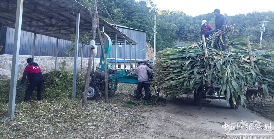 记者来到恭门镇城子村的饲料玉米地里,只见农用车满载新鲜的玉米秸秆停靠在青贮机械旁,村民们分工明确、协作有序。有的村民负责将秸秆整齐送入粉碎机,有的则忙着整理粉碎后的饲料,机器轰鸣声中,玉米秸秆被快速加工成牲畜喜爱的“美味佳肴”。