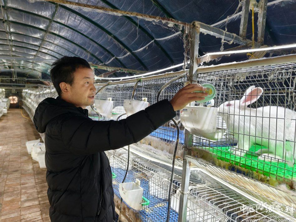 在马夭村伊拉肉兔养殖场,负责人马荣荣正在给兔子投喂饲料。“我们农场现存栏肉兔4000多只,月出栏1000只以上,主要销往四川及周边县区,市场需求很大。”