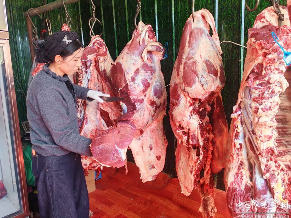 年轻一代也接过了这本“养牛经”。侄子马杰和嫂子一起经营家庭农场和牛肉铺子,成为懂技术、会经营的新一代养牛人。在和马杰交谈中得知,虽然肉铺开在家里面,销量却格外喜人,平常一天能卖2头现宰鲜牛,春节旺季一天能卖到8头,新鲜好肉深受乡邻欢迎。靠着养牛卖肉,一家人盖起了两层小楼,真正从“糊口”过上了小康日子。