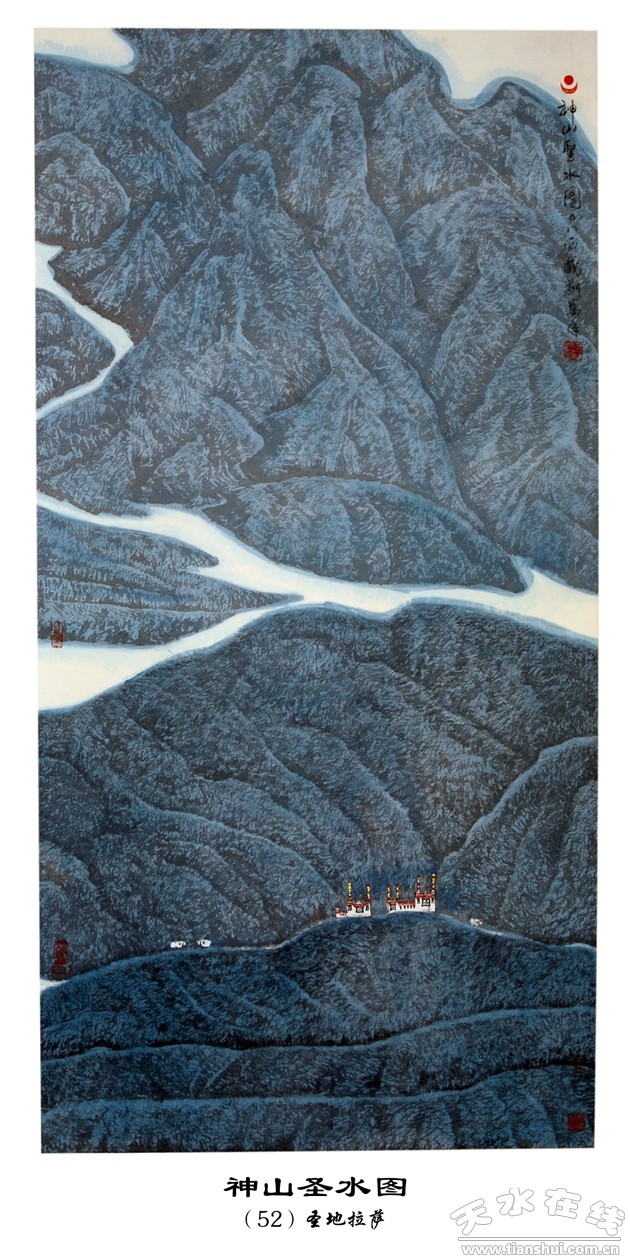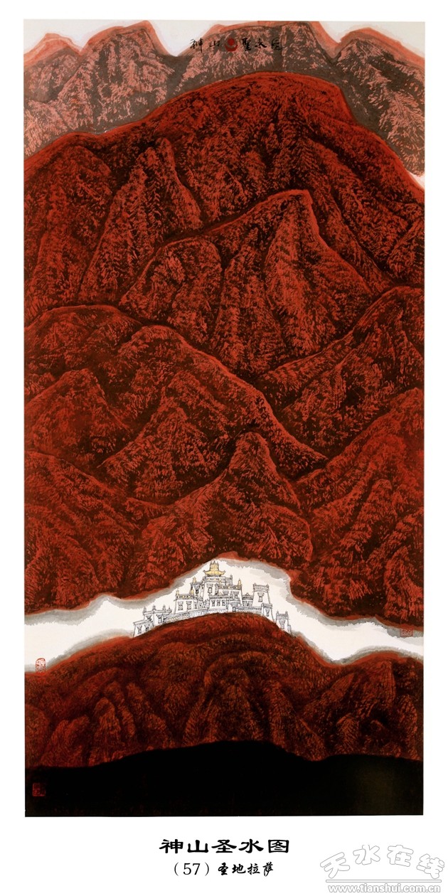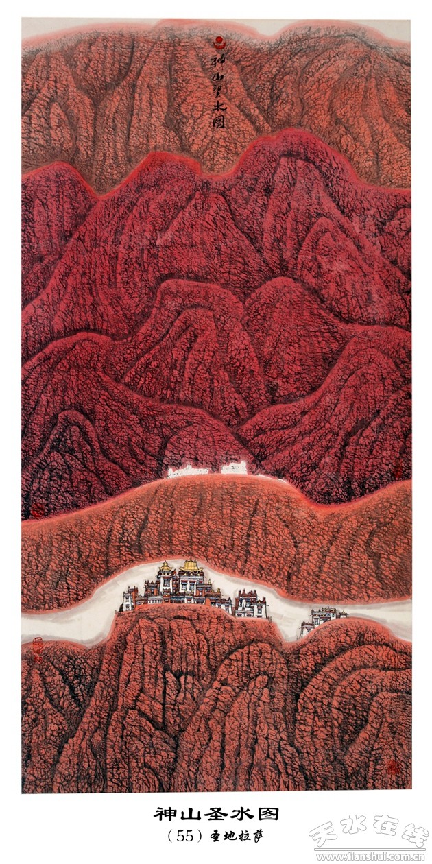 刘万年的西藏山水画,有鲜明强烈的地域特征;新颖别致的表现手法;正大阳刚的民族气度;雄浑壮阔的时代风貌;肃穆淡远的宗教情怀;深邃沉静的哲理思考;虔笃完美的神性境界,是中国当代山水画苑中的一朵奇葩。