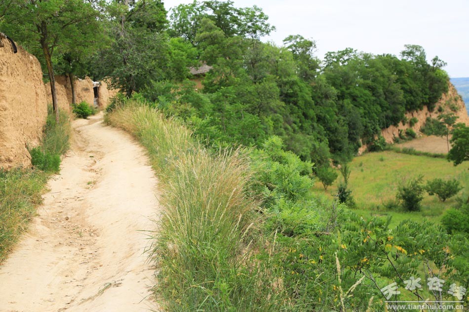 登上点将台俯瞰整个古村,一座座错落破败的农舍,一片片杂草丛生的打麦场,像零散的积木,又像孤独的守望者,就这样依偎在夏花的臂弯里,那么小,那么僻静。远远望去,延绵的堡子山与西秦岭山脉相连,半山明亮,半山阴沉,山顶古树苍翠,草木繁茂;极目远眺,东面和西面两山上皆有一古堡,与曹操堡遥相呼应,静悄悄地低伏在光影之中。山脚下,南沟河、黑河沟从堡子山两侧流过,河水清澈翠绿,如两湾碧碧的玉带镶嵌其中,仿佛一对温柔可爱的姐妹,依偎在母亲的身边。它们静静地流淌,像一面历史的镜子,带我们穿越到古道征途。